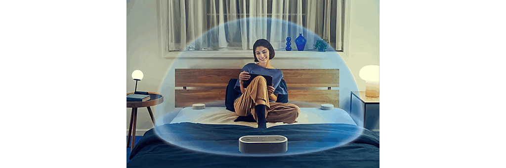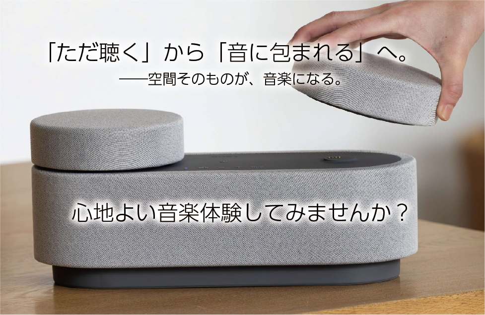 テーブルや棚に置くだけで、まるでスピーカーに囲まれているような感覚に。映画はもちろん、ライブ音源やジャズなど音楽再生にこそ真価を発揮します。
