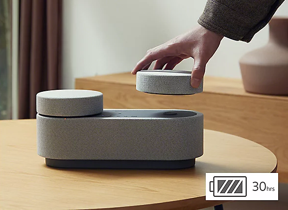 セパレート型スピーカーは完全ワイヤレス。電源ケーブルも不要なので、リビング・寝室・キッチン・屋外など、どこでも設置OK。